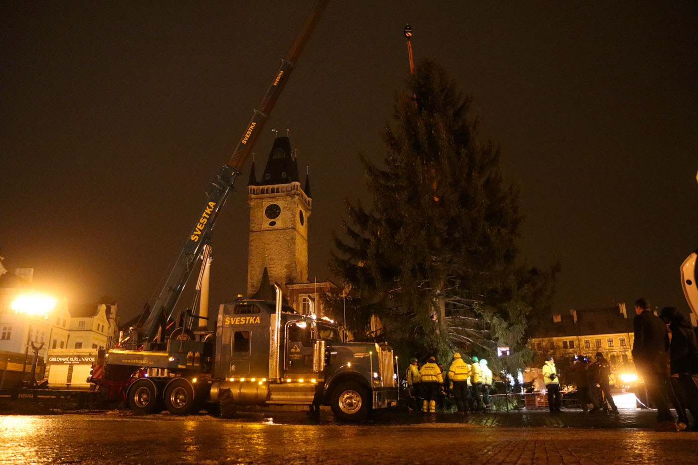 В ночь на вторник, 25 ноября, на Староместской площади в центре Праги установили главную рождественскую елку страны. В минувшую субботу ее срубили в поселке Йиржетин-под-Йедловоу (Jiřetín pod Jedlovou) Устецкого края.