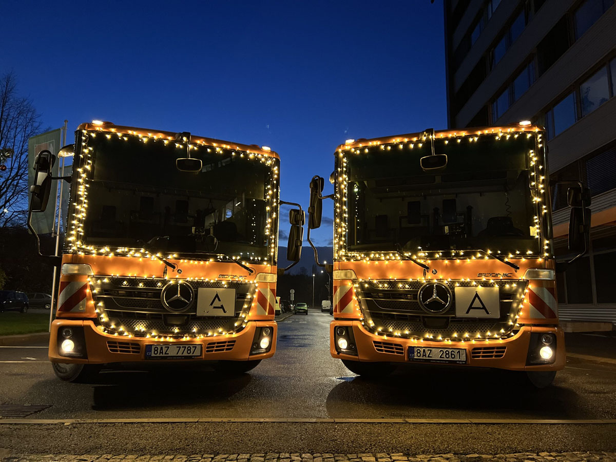 Два мусоровоза в Праге примерили рождественский наряд