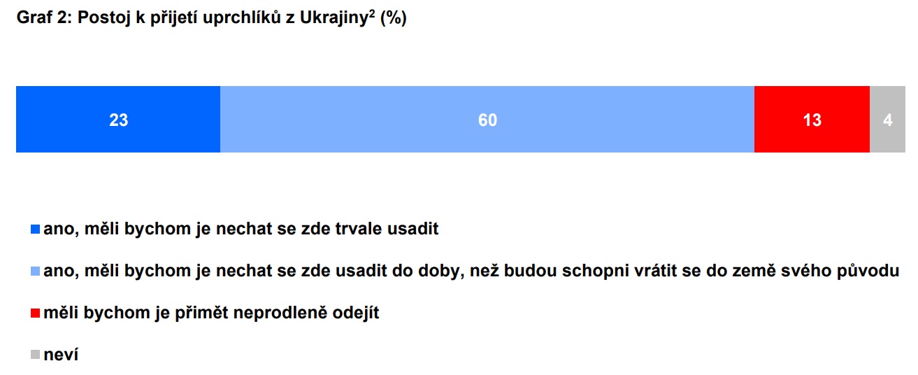 О том, что принятым переселенцам нужно предоставить возможность остаться в Чехии и после войны, заявили 23% опрошенных. Год назад этот показатель составлял всего 9%.