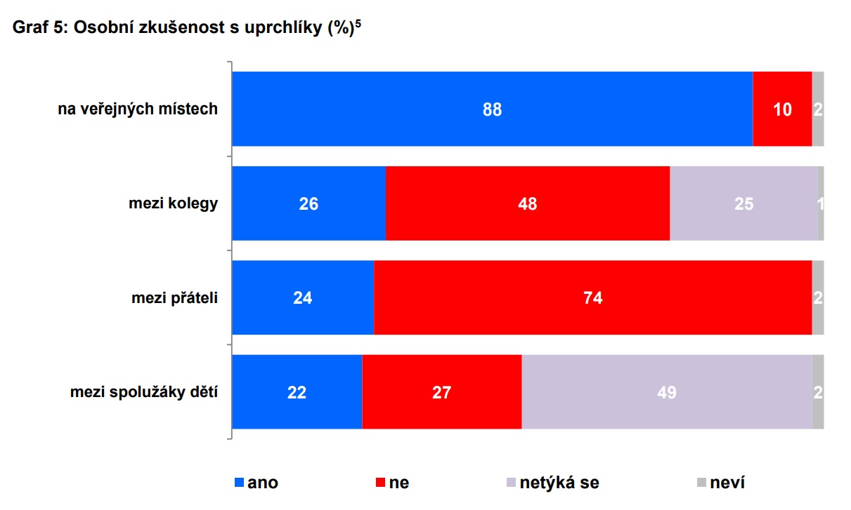 В свою очередь 13% респондентов считают, что власти должны принудить беженцев как можно скорее покинуть Чехию (такой вариант ответа в прошлогоднем исследовании не предлагался. Вместо него был вариант «Чехии не следует принимать беженцев» — 23%).