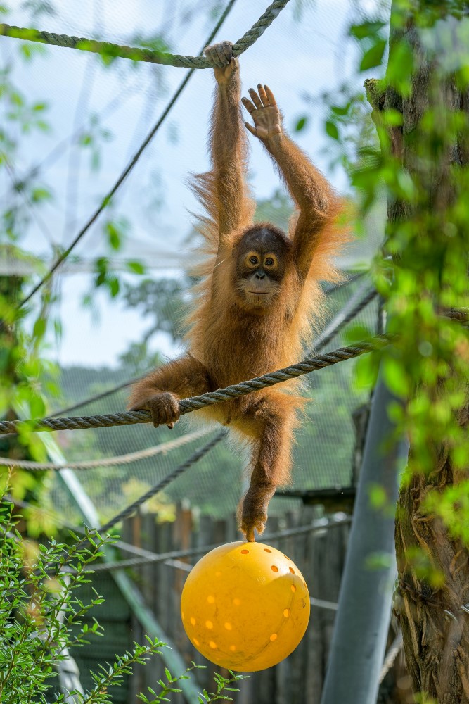 Современные зоопарки содержат не только орангутангов, но и других человекообразных обезьян и приматов в среде, которая позволяет им естественное движение и игру, включая канаты, конструкции для лазанья и другие игровые элементы.