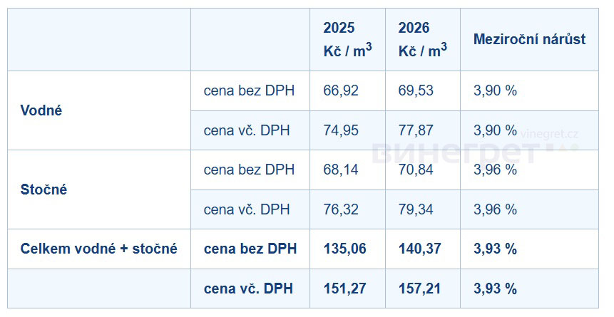 Согласно принятому тарифу, по сравнению с текущей ценой один кубометр водопроводной воды (включая отвод в канализацию) подорожает на 5,94 кроны до 157,21 кроны (включая НДС).
