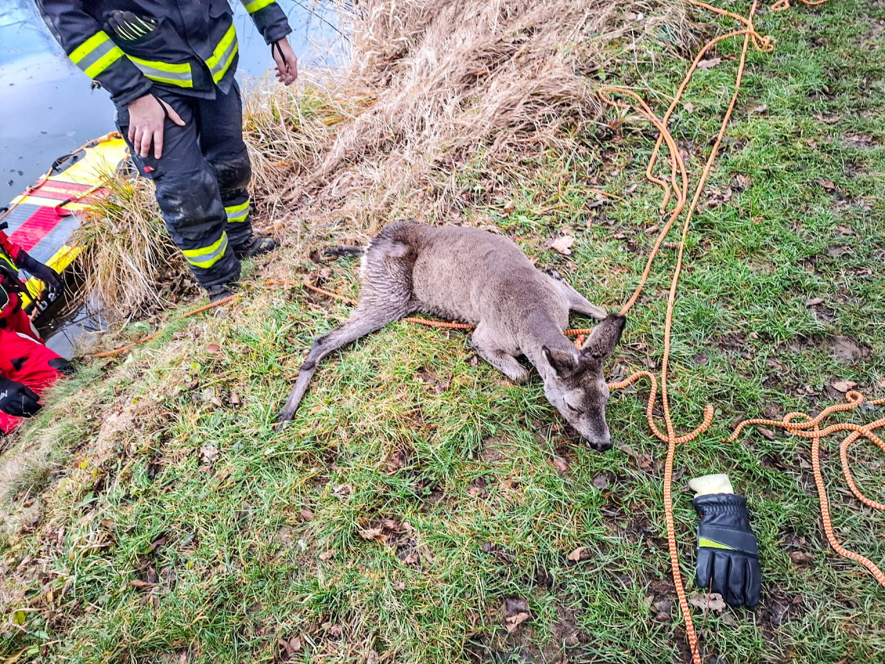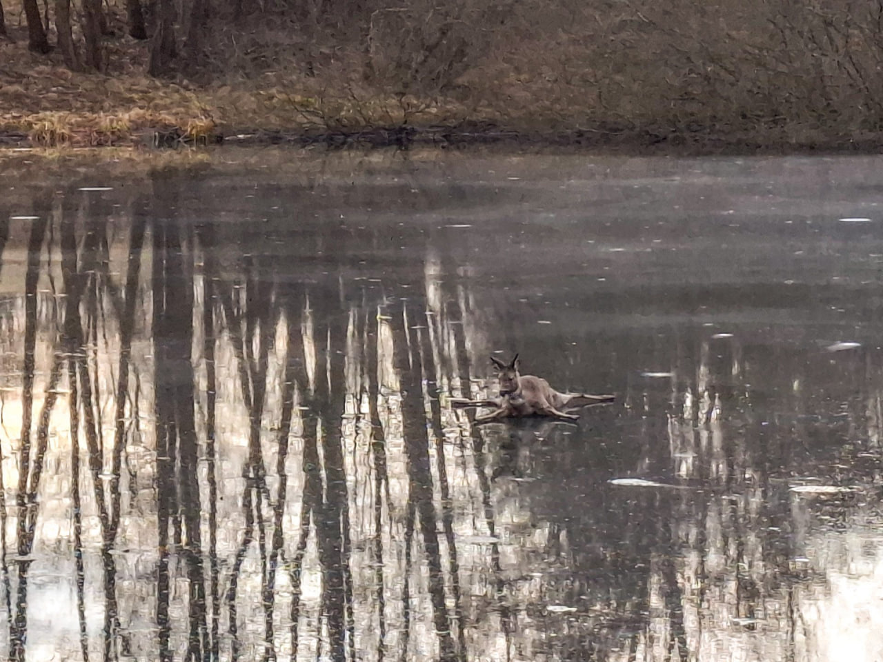 В Чехии пожарные спасли косулю, застрявшую на замерзшем пруду