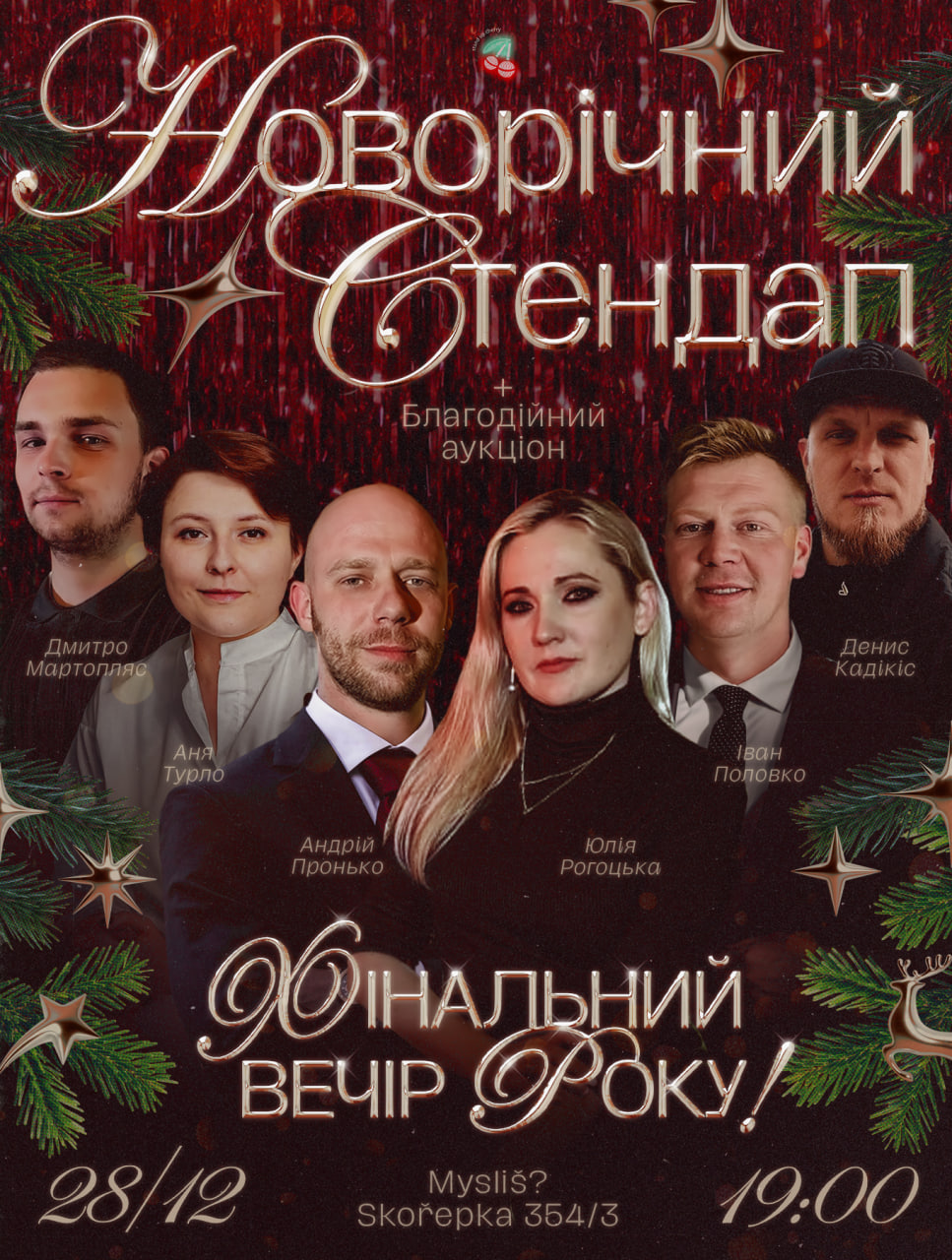 🔥 У неділю 28 грудня відбудеться фінальний вечір року у закладі «Myslíš?», який знаходиться в центрі Праги. Окрім топових жартів від 6 досвідчених коміків, гостей чекає частування джерками від Snack House Prague.